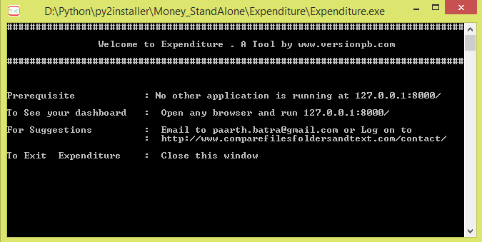 4. Double Click on Expenditure.exe , doing this you will see windows command prompt will open giving informtion on how to open the tool