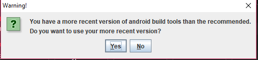 After this click Generate button to generate the projects . You may get 2 warnings regarding the more recent versions of android build tools and API , just dont worry about it and click on Yes . Below are the screenshots . After Successful build you will see screenshot as below :